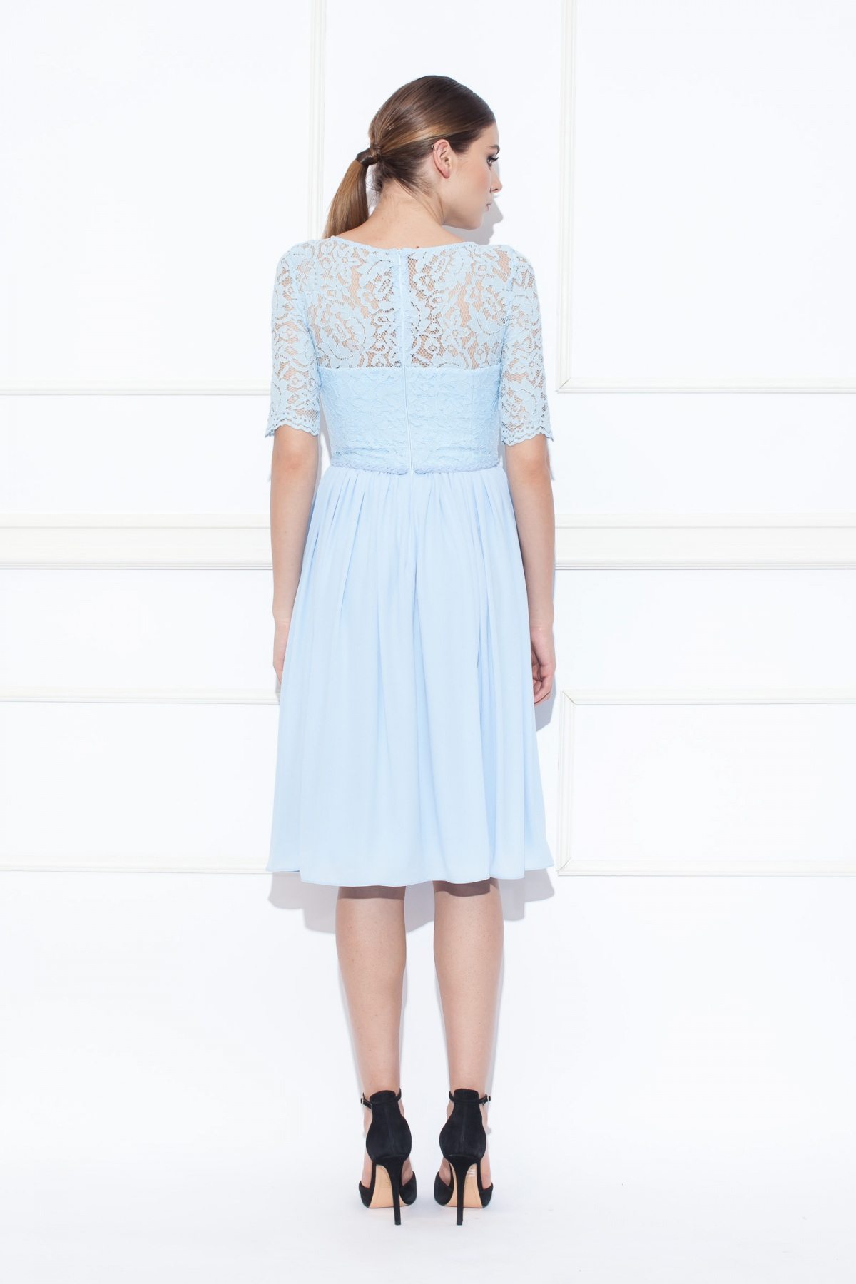 Blue midi dress with lace details