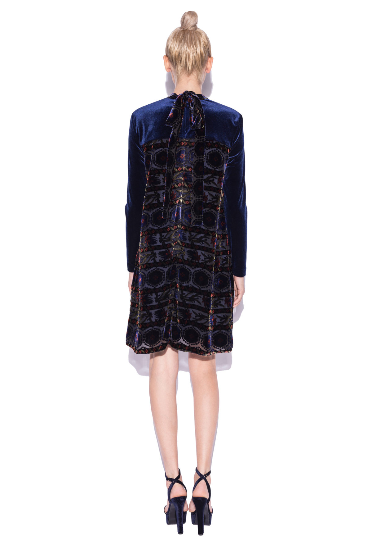 Product description Turtleneck velvet dress with abstract print and long sleeves