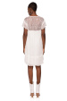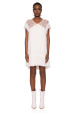 Product description Mini silk dress. The shoulders and back are made entirely of delicate lace. Flower details with very thin fringes.