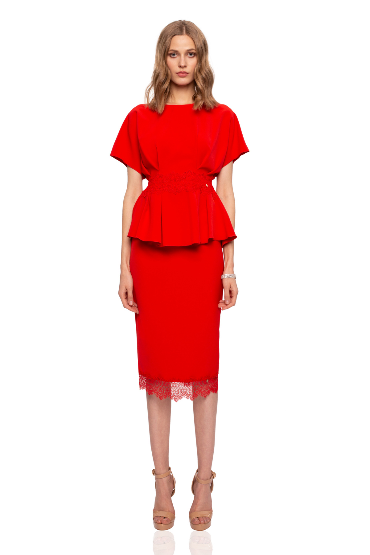 The model wears 36 size, model dimensions: 180 cm tall, 89 cm bust, 60 cm waist, 89 cm hips