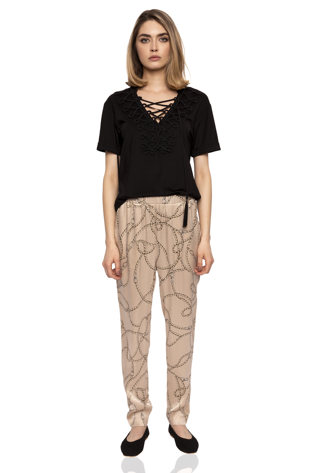 Product description Tapered printed trousers, made of delicate materials, with print.