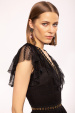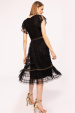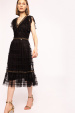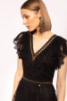 Modelul poarta masura 36, dimensiuni model: 174 cm inaltime, 81 cm bust, 59 cm talie, 87cm sold