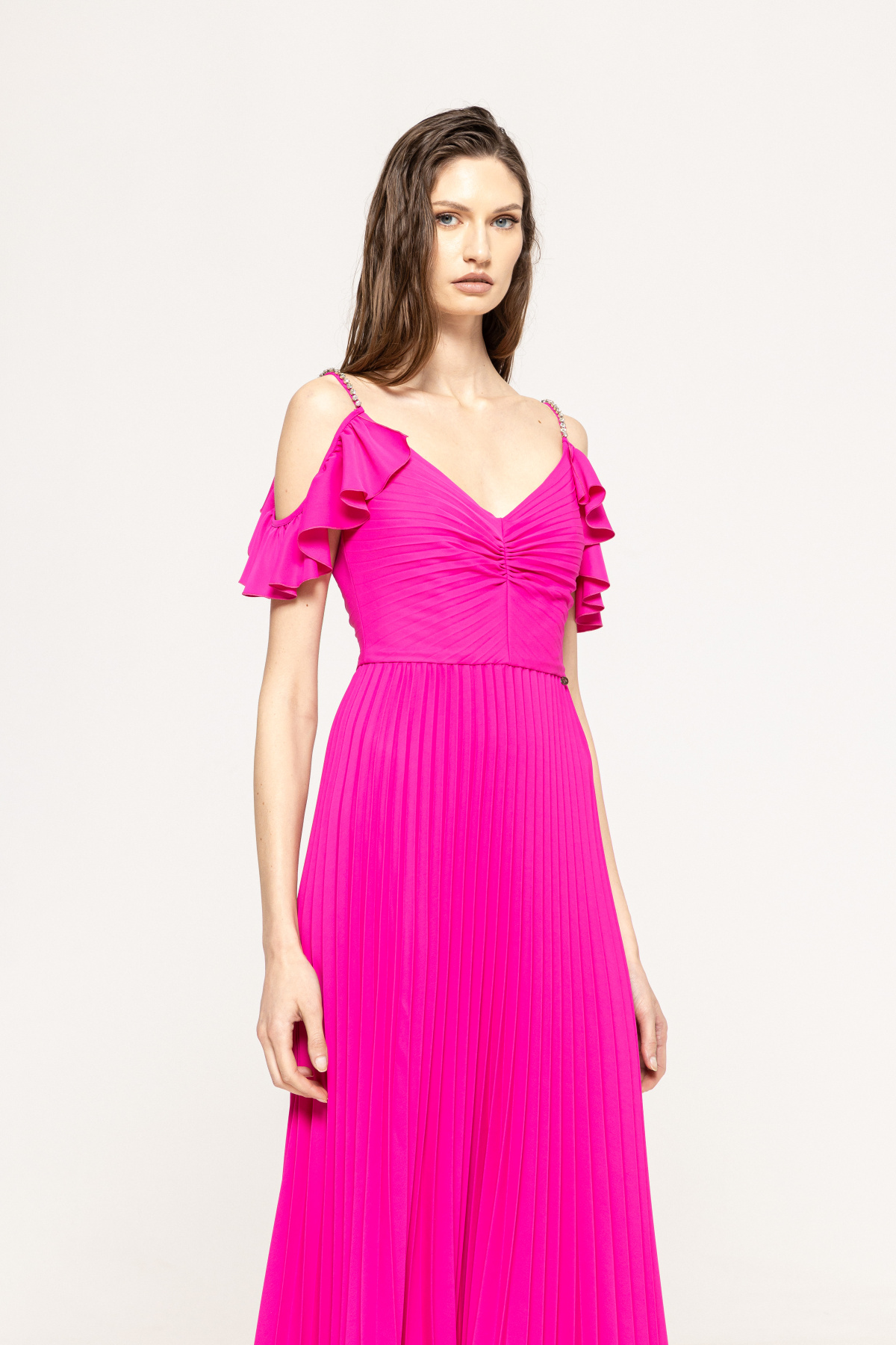 Product description Crystal-embellished pleated dress