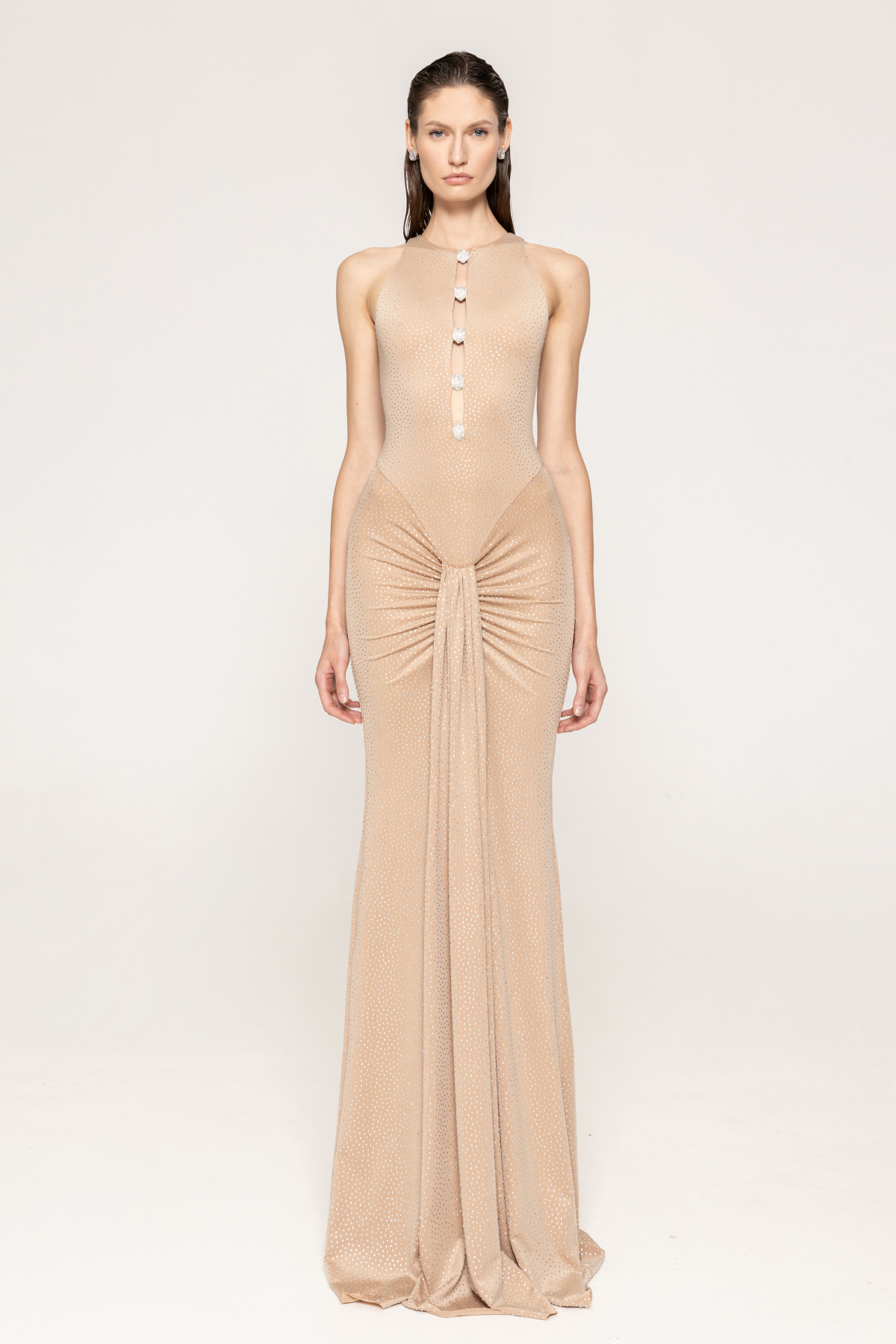 Product description Halterneck crystal-embellished maxi dress