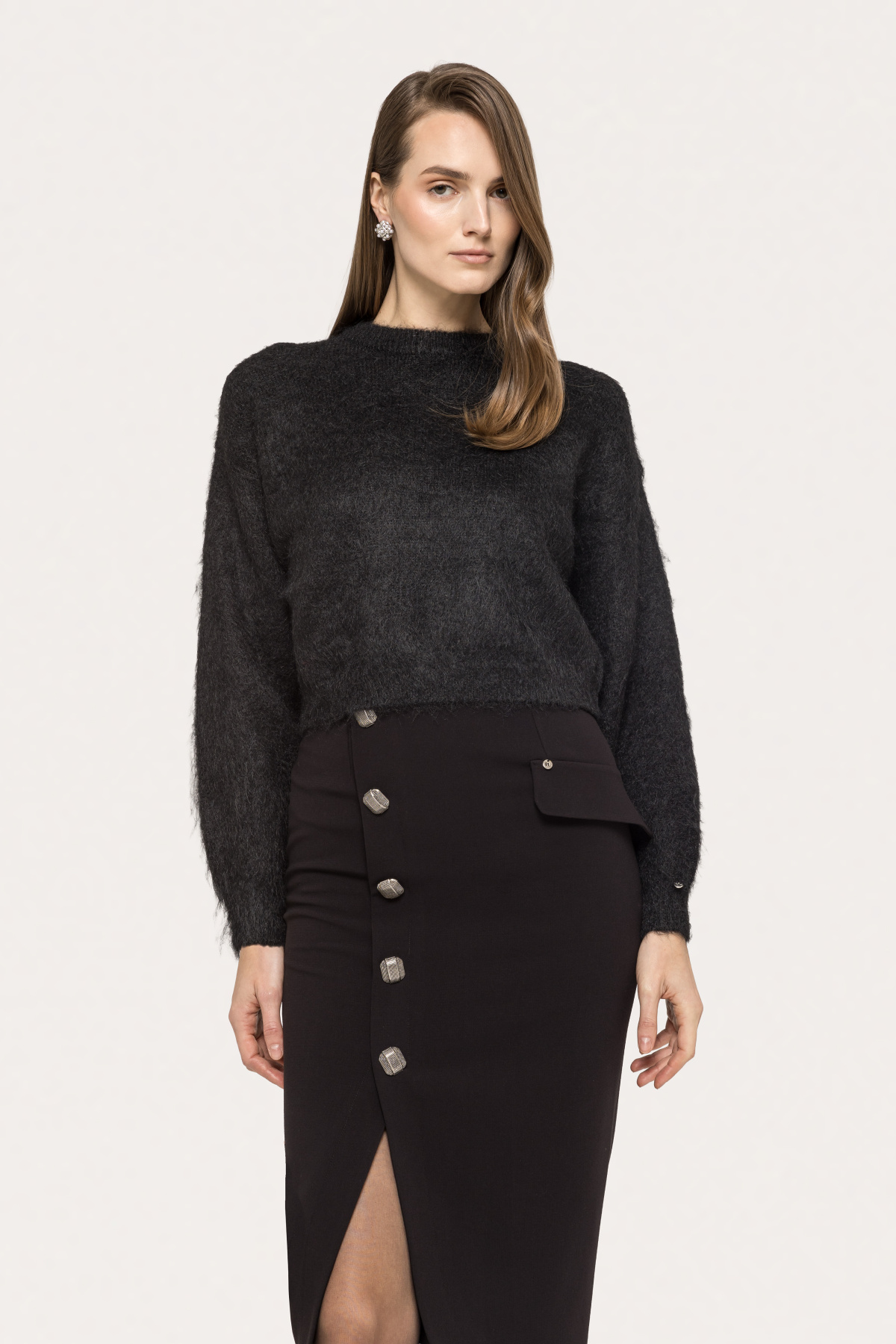 The model wears 36 size, model dimensions: 179 cm tall, 84 cm bust, 59 cm waist, 88 cm hips