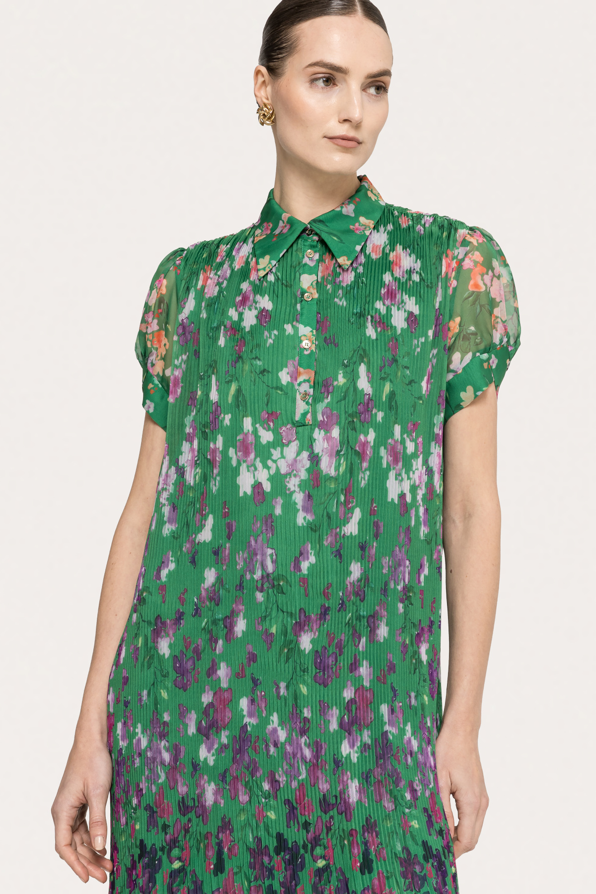 Product description Printed pleated midi dress