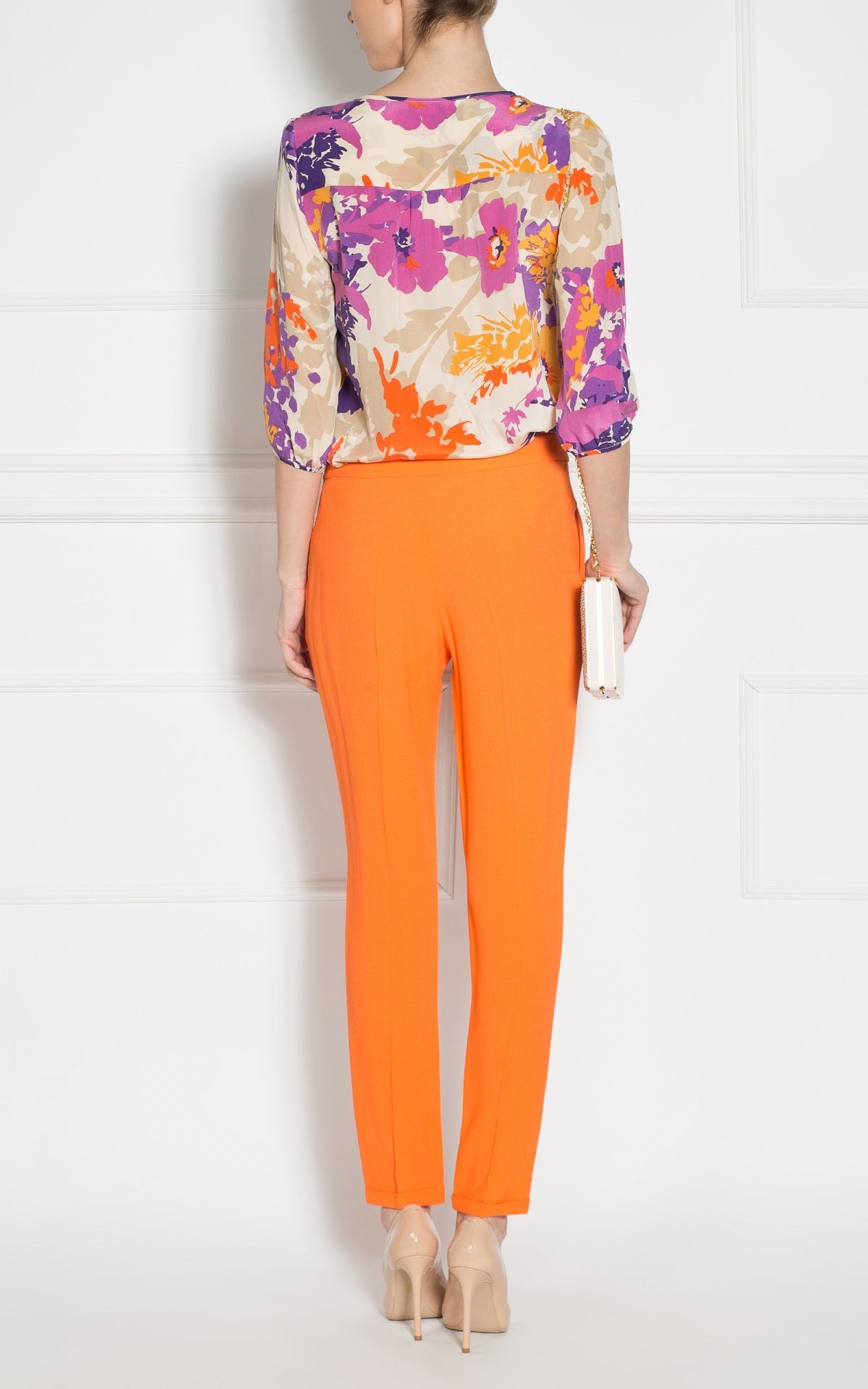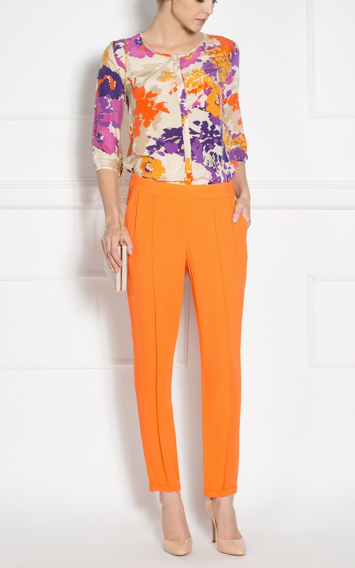 The model wears 36 size, model dimensions: 180 cm tall, 89 cm bust, 60 cm waist, 89 cm hips