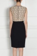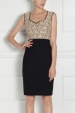 Office midi dress with nude lace assembly. Perfect for days when you want to be elegant at the office or feminine at the meetings where you can accessorize your outfit with an oversized envelope and stiletto shoes. Black piping hem highlights the cleavage pleasant way leaving room for a statement necklace, the pencil shape favors all silhouettes and gives a lengthening effect for the legs.