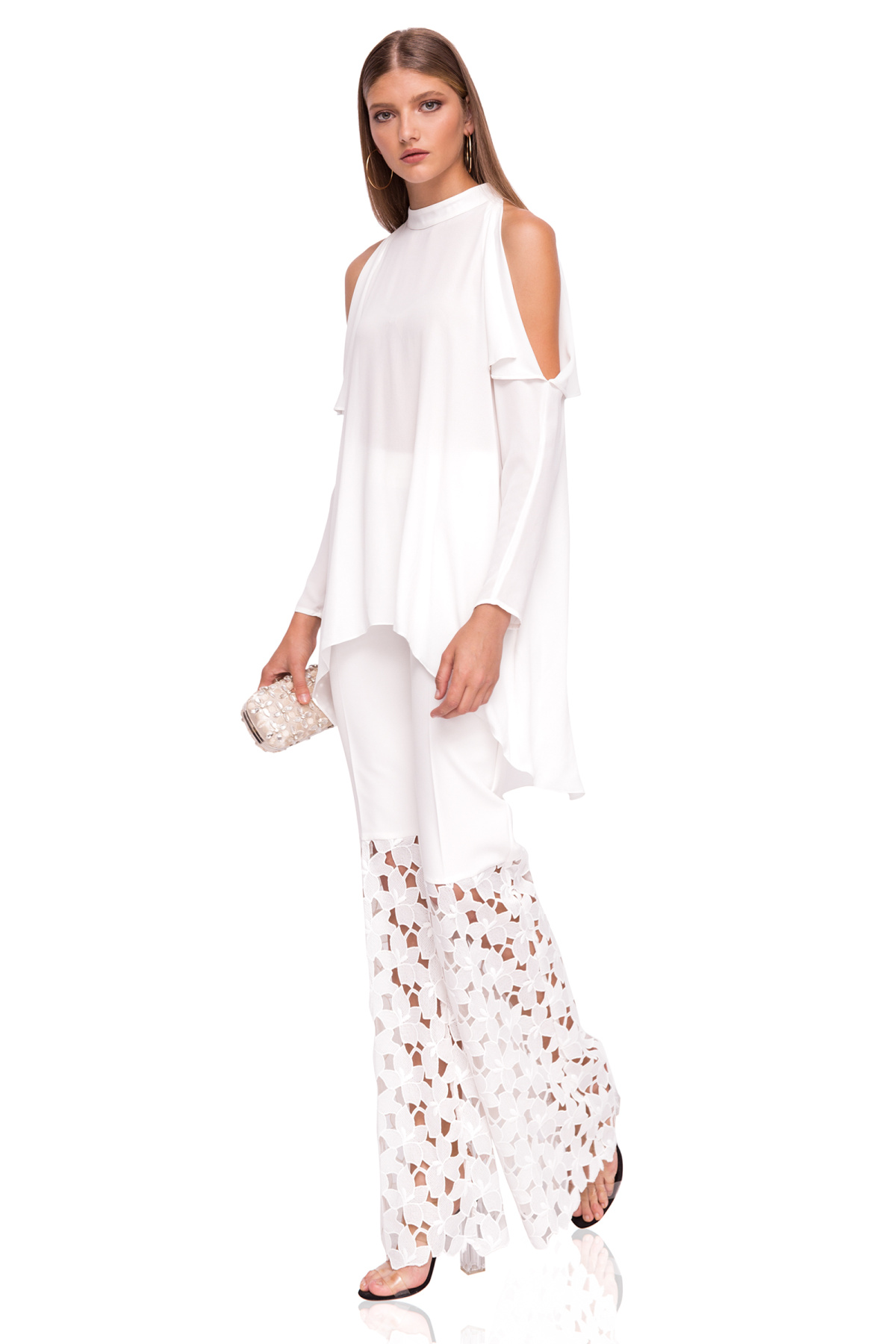 Modelka jest ubrana w rozmiar 36, wymiary modelki: wzrost 174 cm, biust 86 cm, talia 60 cm, biodra 80 cm