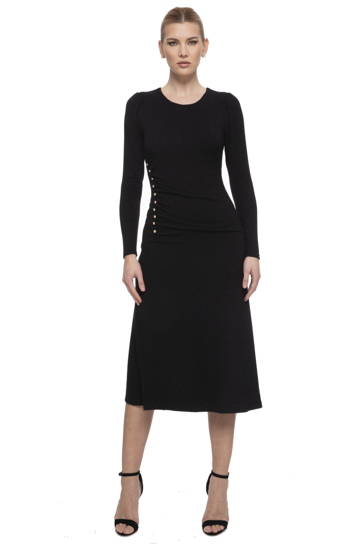 Charakterystyka produktu Tkanina: 78% VISCOSE, 11% POLYAMIDHE,;9% MATALLIC FIBERS, 2%;ELASTANE;LINING: 55% RAYON, 37% POLYESTER, 8% SPANDEX