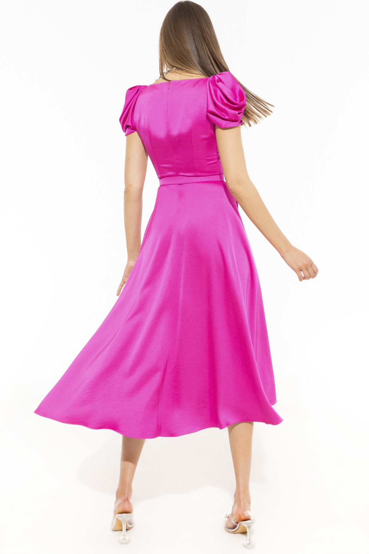 Modelka jest ubrana w rozmiar 36, wymiary modelki: wzrost 174 cm, biust 86 cm, talia 60 cm, biodra 80 cm