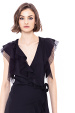 Modelul poarta masura 36, dimensiuni model: 178 cm inaltime, 82 cm bust, 59 cm talie, 89 cm sold