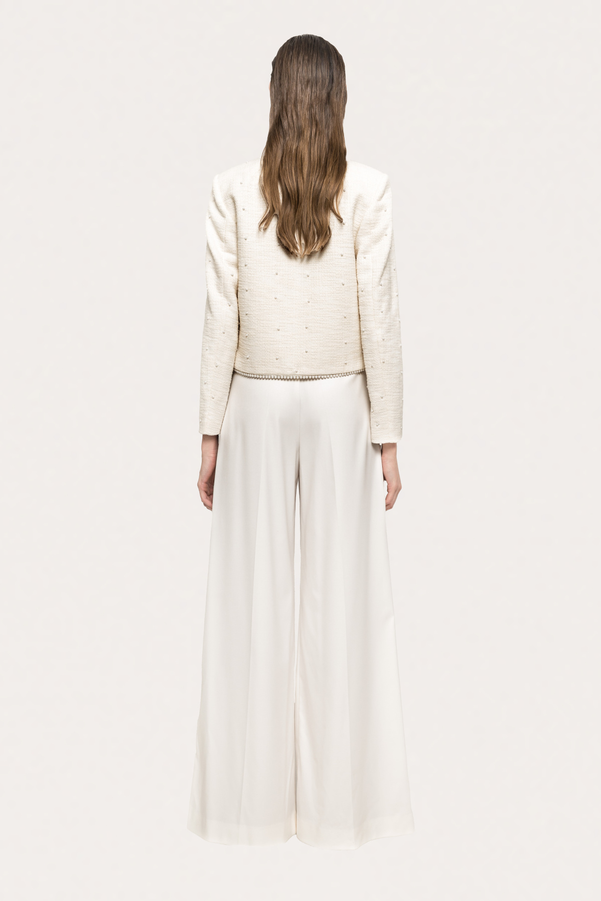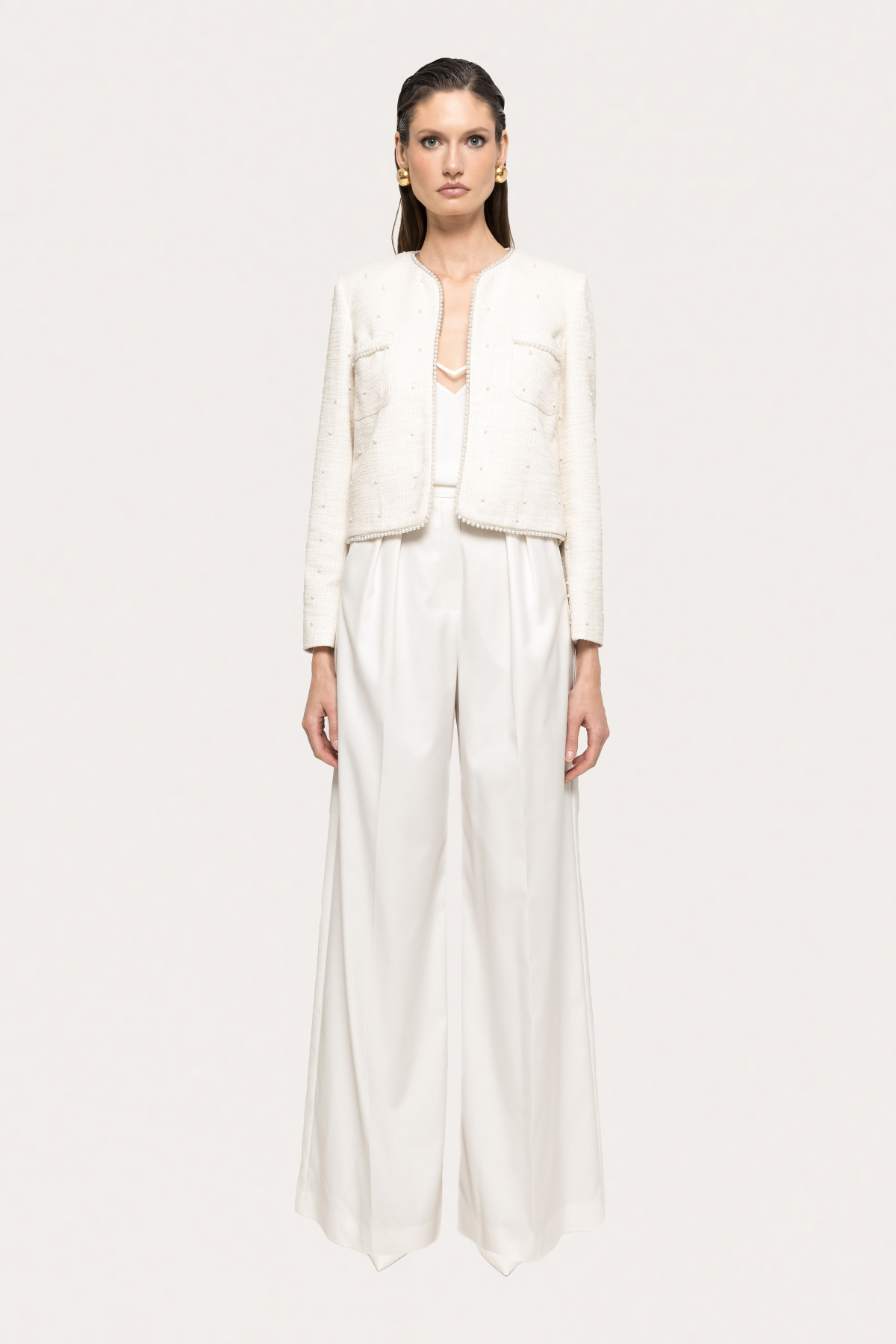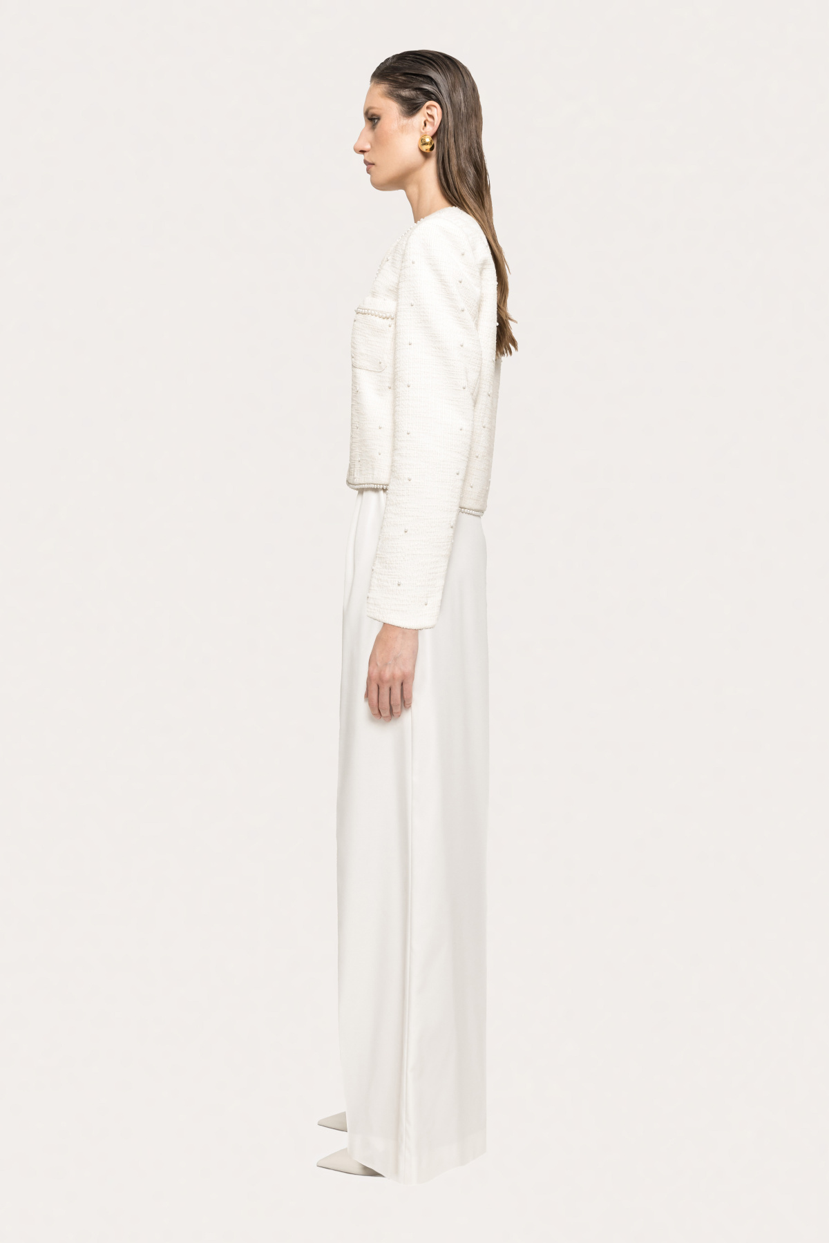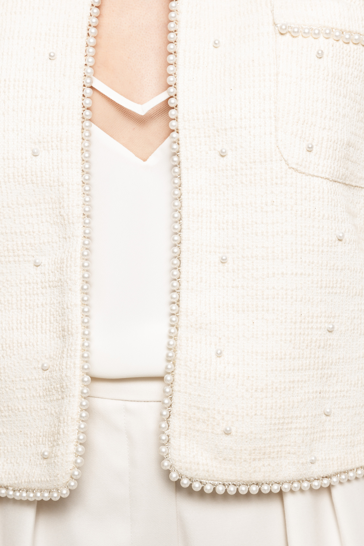 Pearl-detail boucle suit jacket