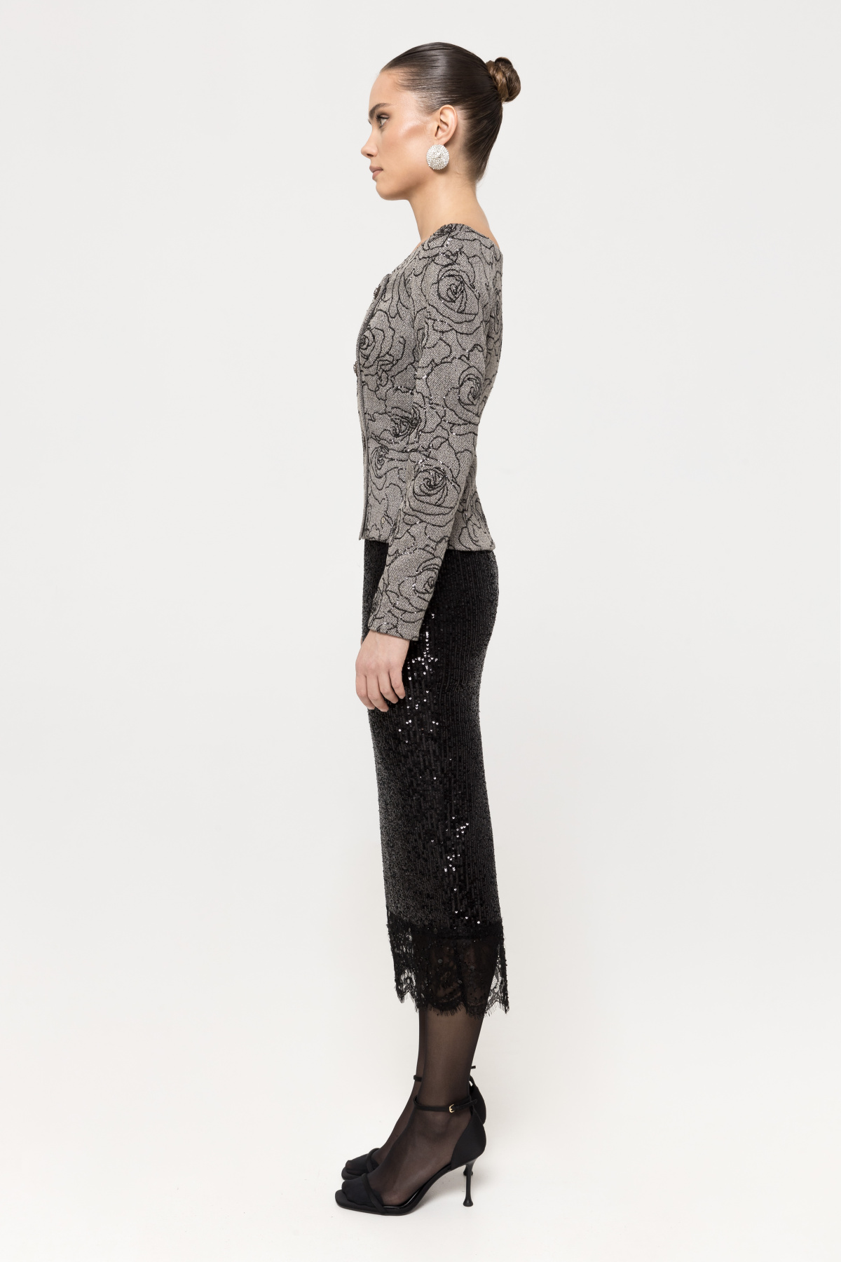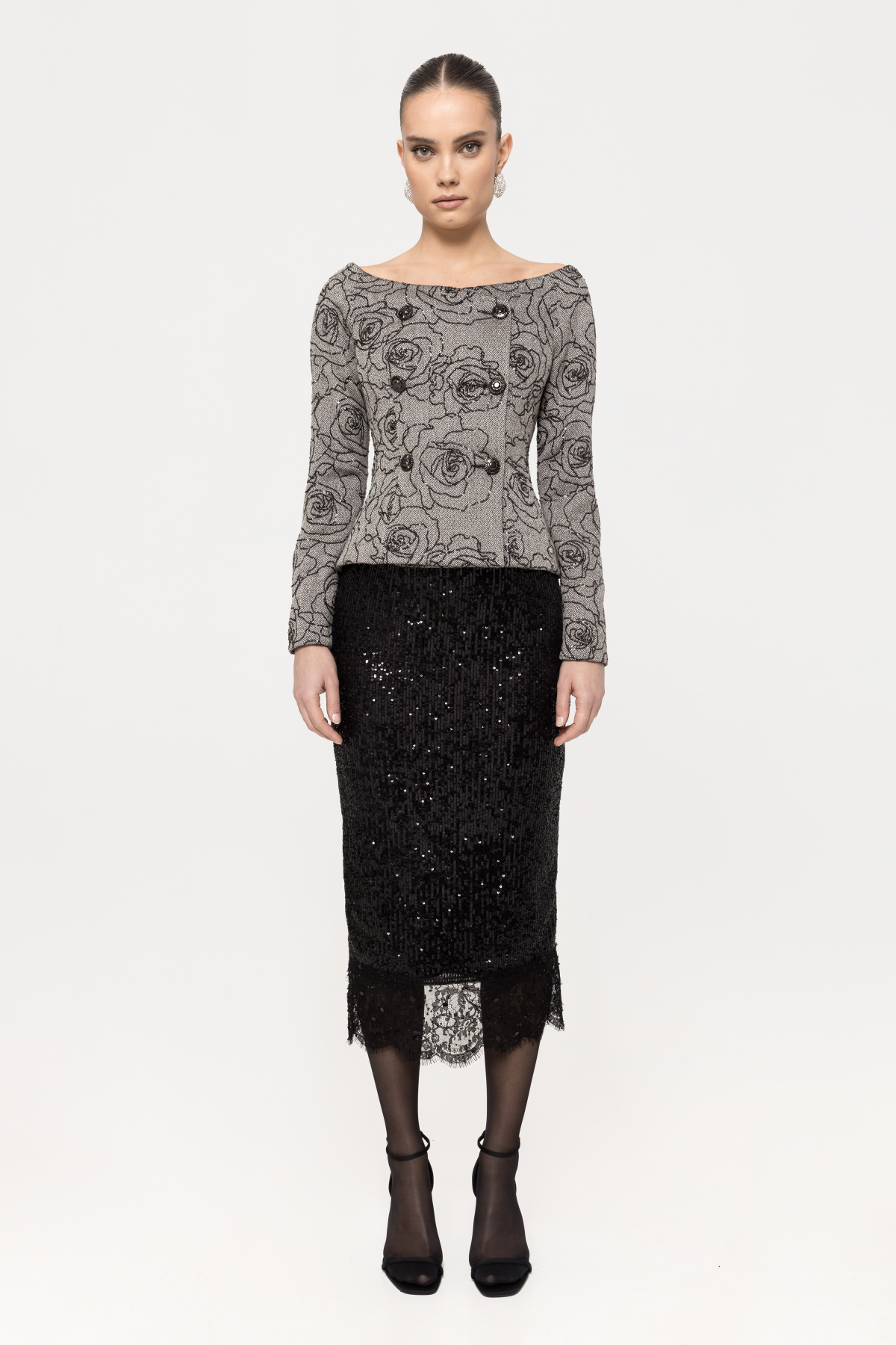 The model wears 36 size, model dimensions: 178 cm tall, 84 cm bust, 63 cm waist, 94 cm hips