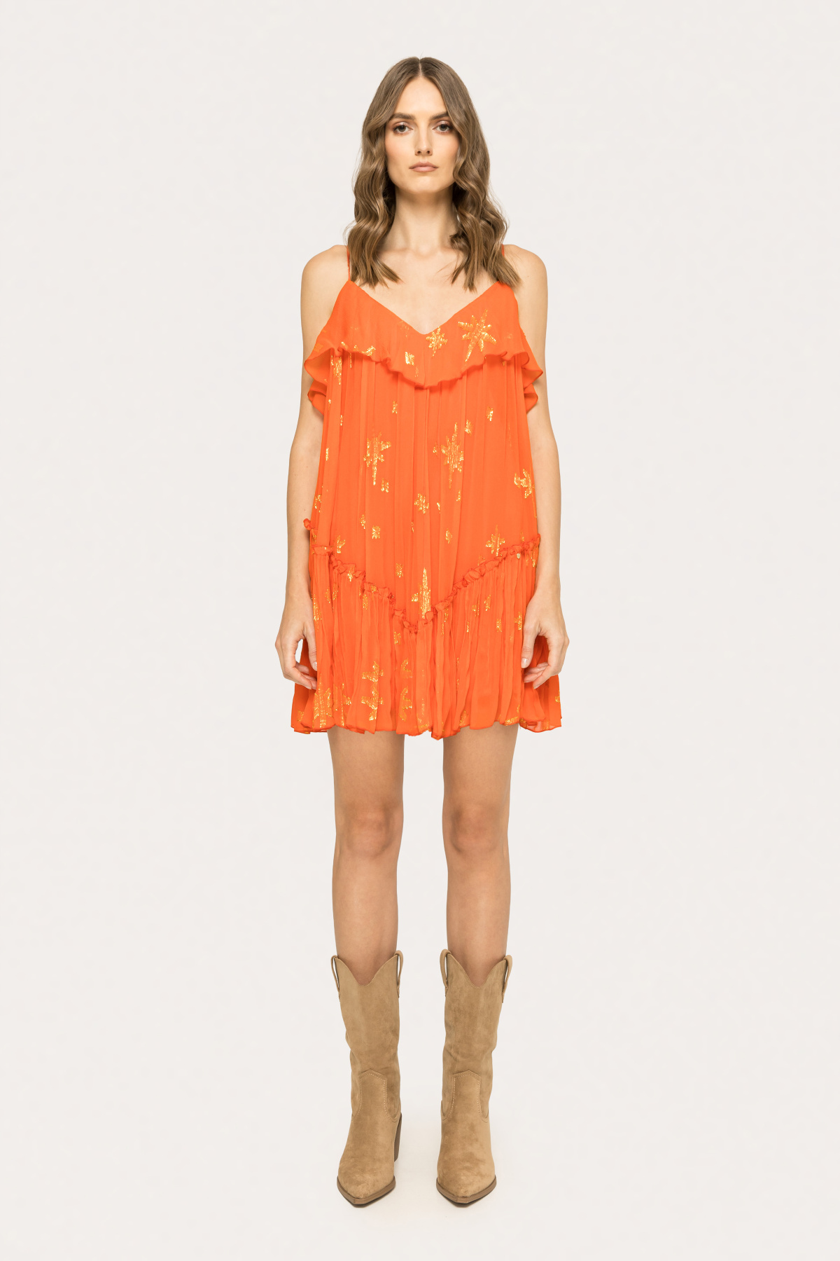 The model wears 36 size, model dimensions: 179 cm tall, 83 cm bust, 61 cm waist, 90 cm hips