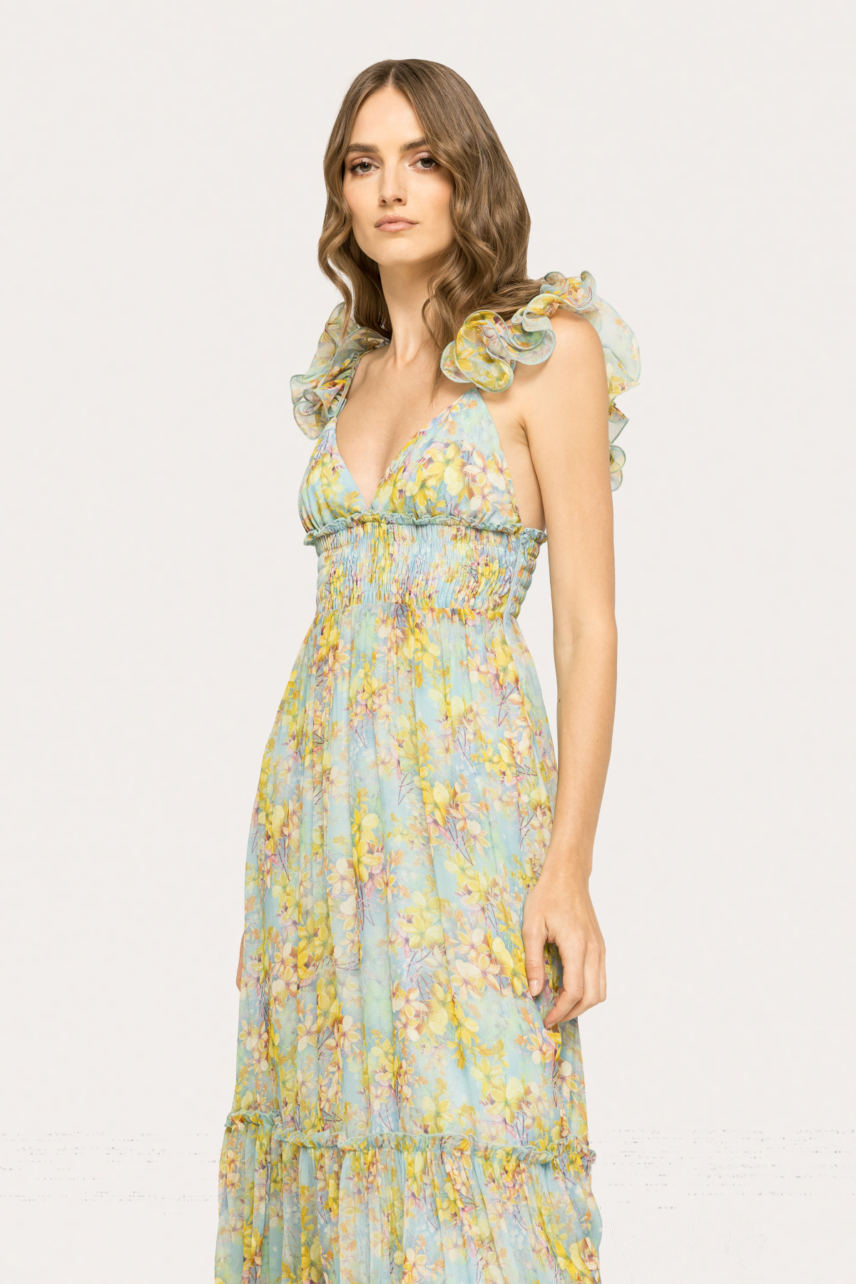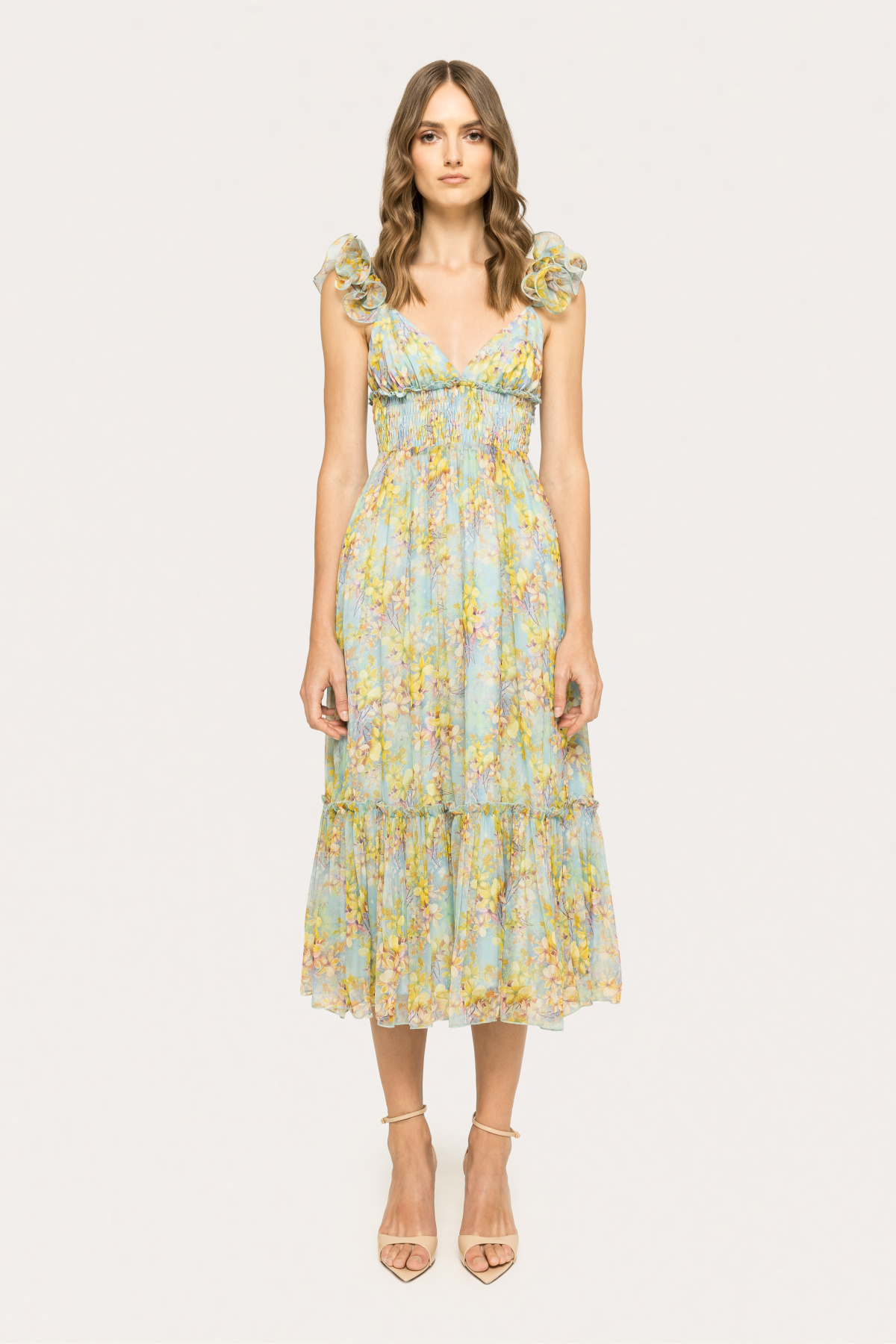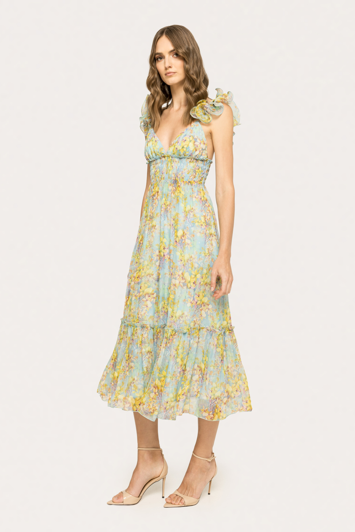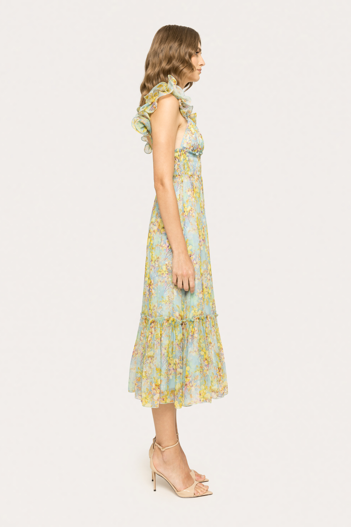 Ruffled silk midi dress