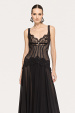 Lace-trim chiffon corset gown