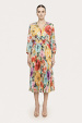 Pleated printed midi dress