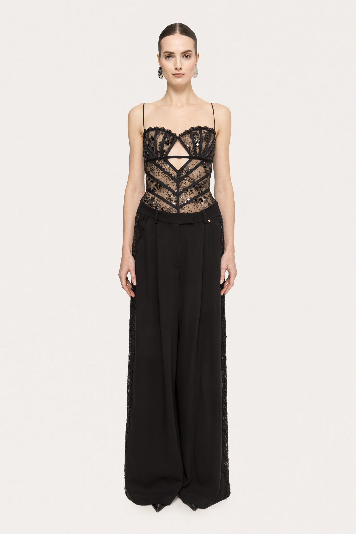 Lace-insert viscose pants