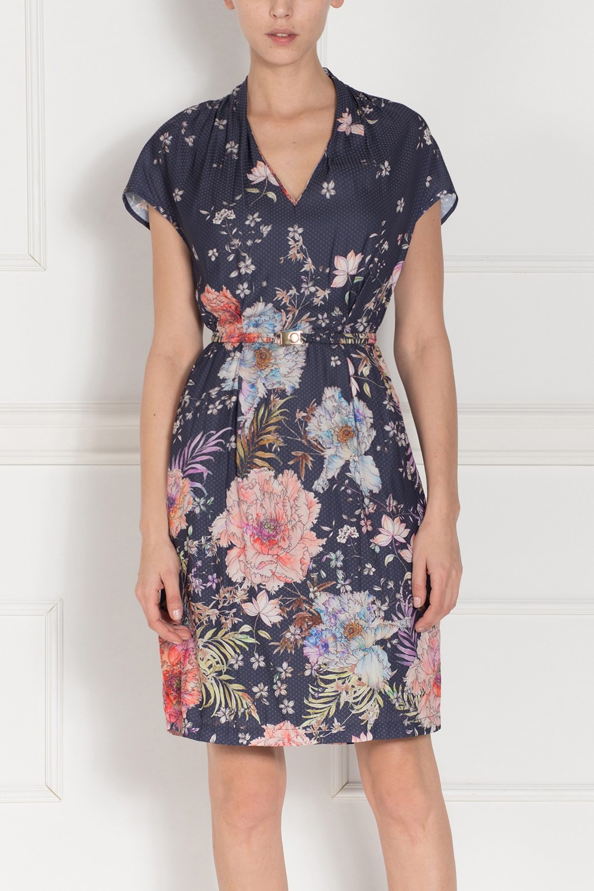 Wzorzysta sukienka z paskiem