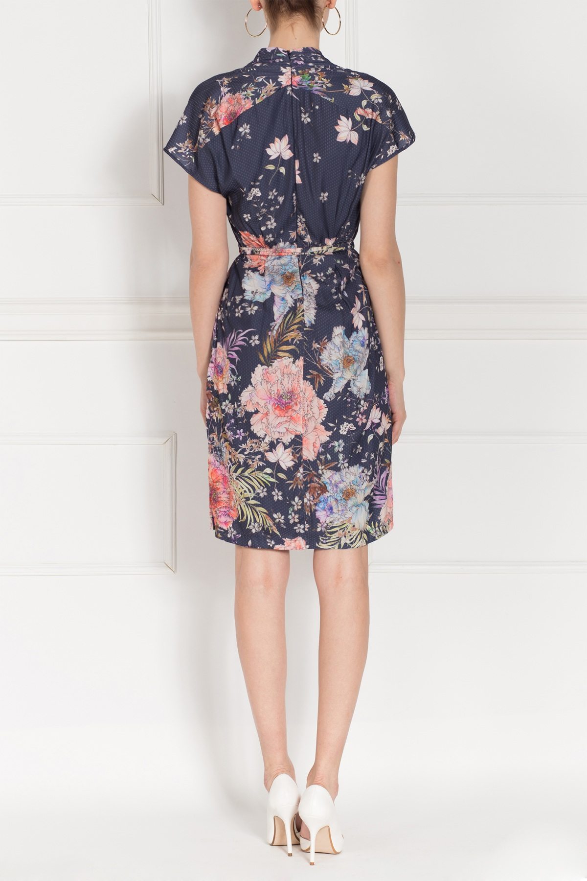 Modelka jest ubrana w rozmiar 36, wymiary modelki: wzrost 174 cm, biust 86 cm, talia 60 cm, biodra 80 cm