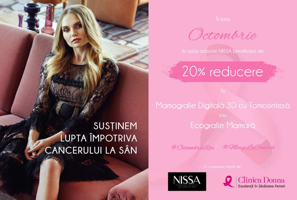 Astfel, achizițiile NISSA din decursul acestei luni îți oferă un voucher de 20% reducere la Centrul de Excelență în Senologie al Donna Medical Center pentru orice Mamografie Digitală 3D cu Tomosinteză sau Ecografie Mamară.
