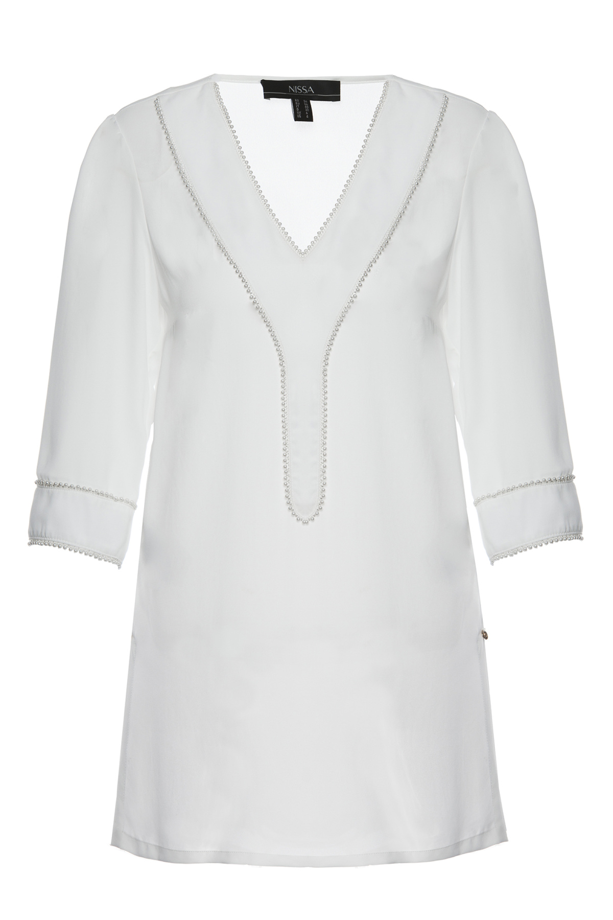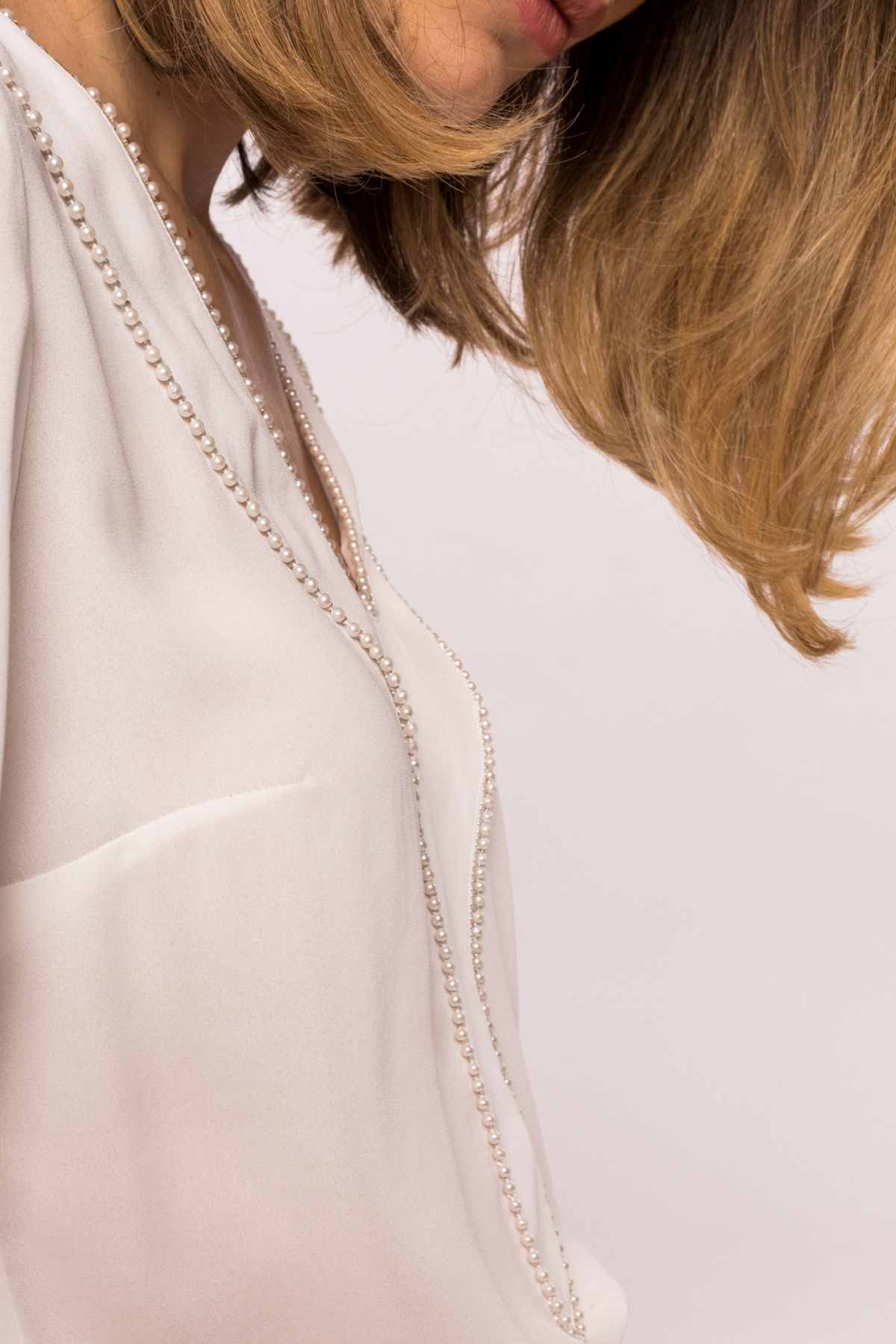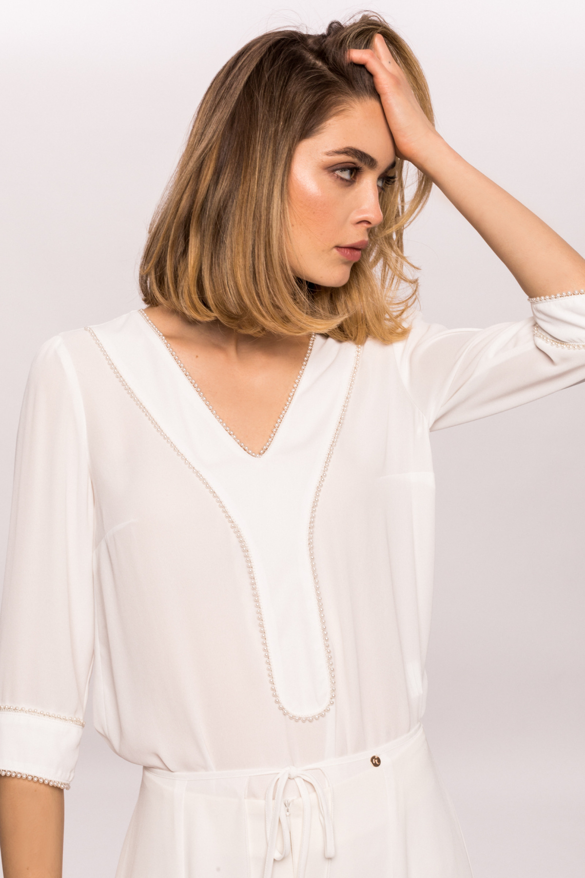 Detalii produs Top cu aplicatie de perle pe bust si mansete