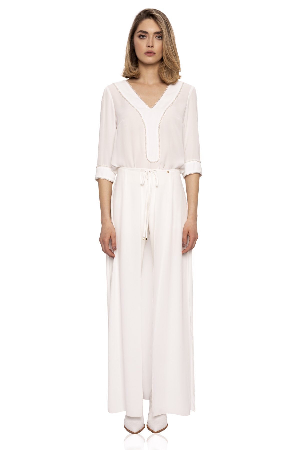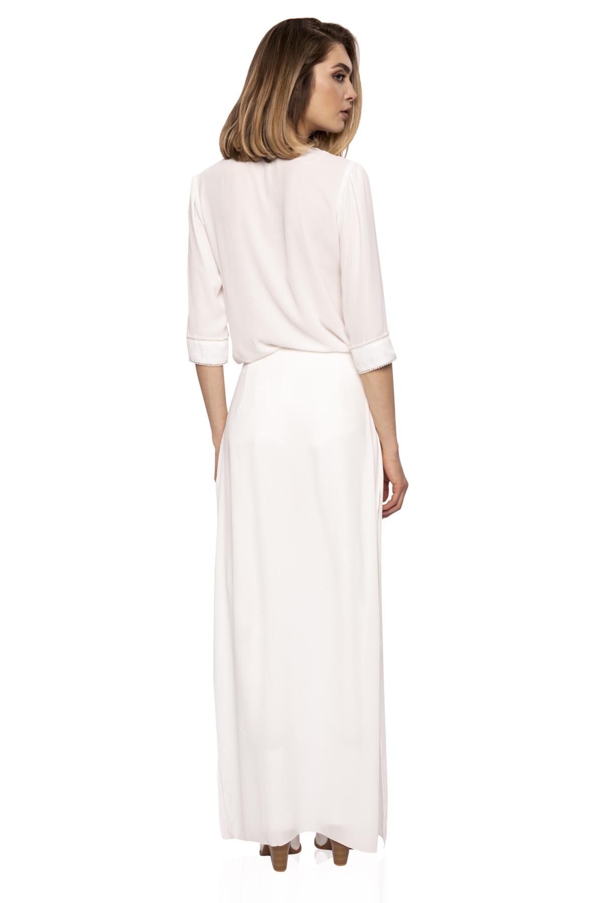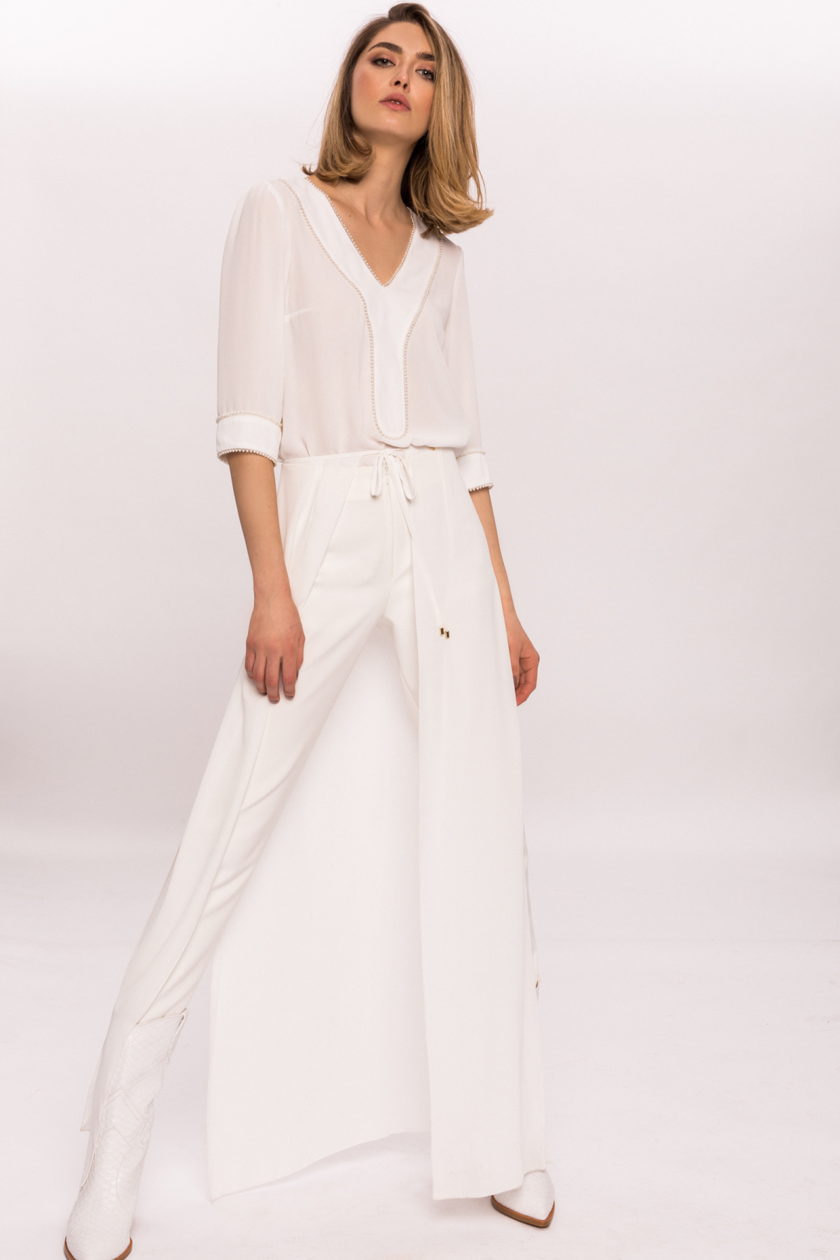 Detalii produs Top cu aplicatie de perle pe bust si mansete