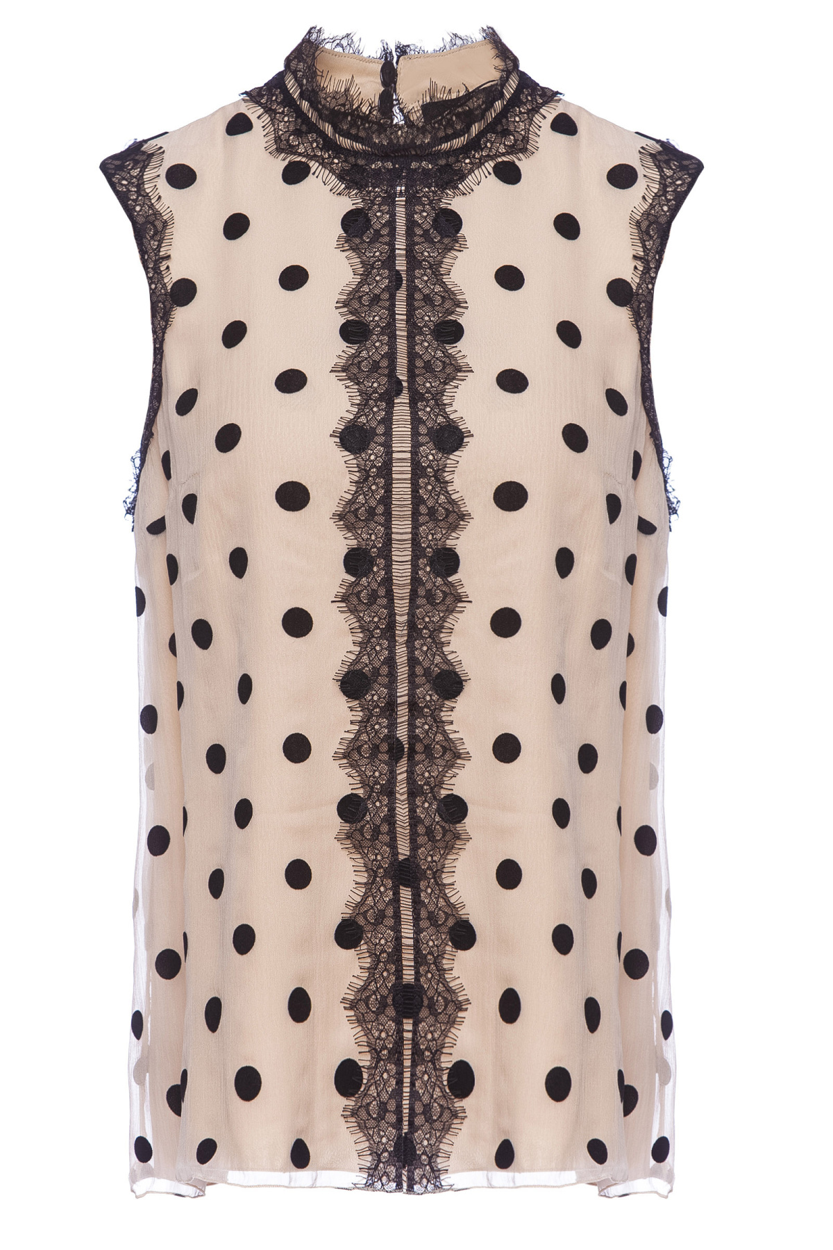 Detalii produs Top nude cu print cu buline si dantela delicata