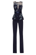 Detalii produs Salopeta cu pantaloni drepti si top din dantela. Decolteu in forma de inima, cu croiala peplum si banda in talie.