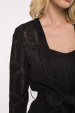 Modelul poarta masura 36, dimensiuni model: 180 cm inaltime, 89 cm bust, 60 cm talie, 89cm sold
