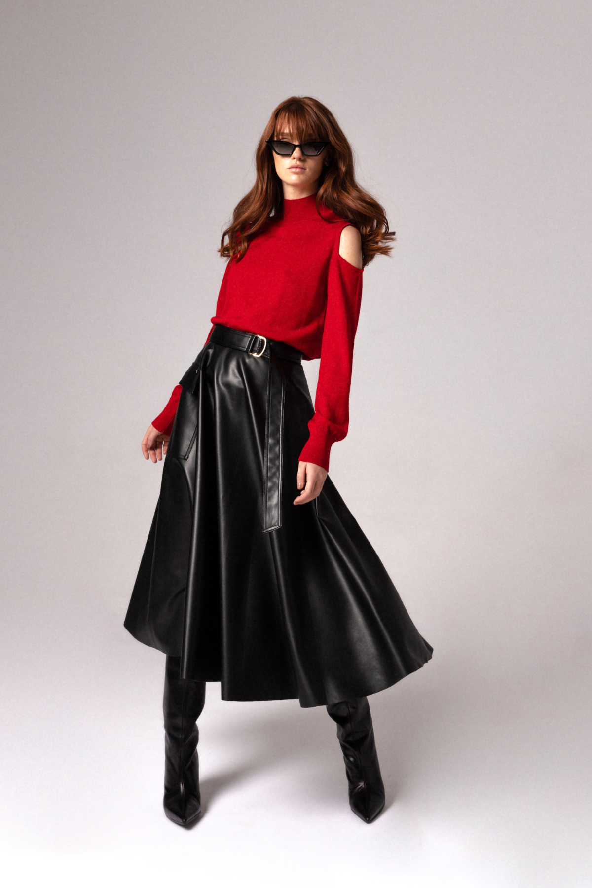 Modelul poarta masura 36, dimensiuni model: 171 cm inaltime, 83 cm bust, 60 cm talie, 89cm sold