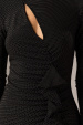 Modelul poarta masura 36, dimensiuni model: 173 cm inaltime, 84 cm bust, 60 cm talie, 90 cm sold
