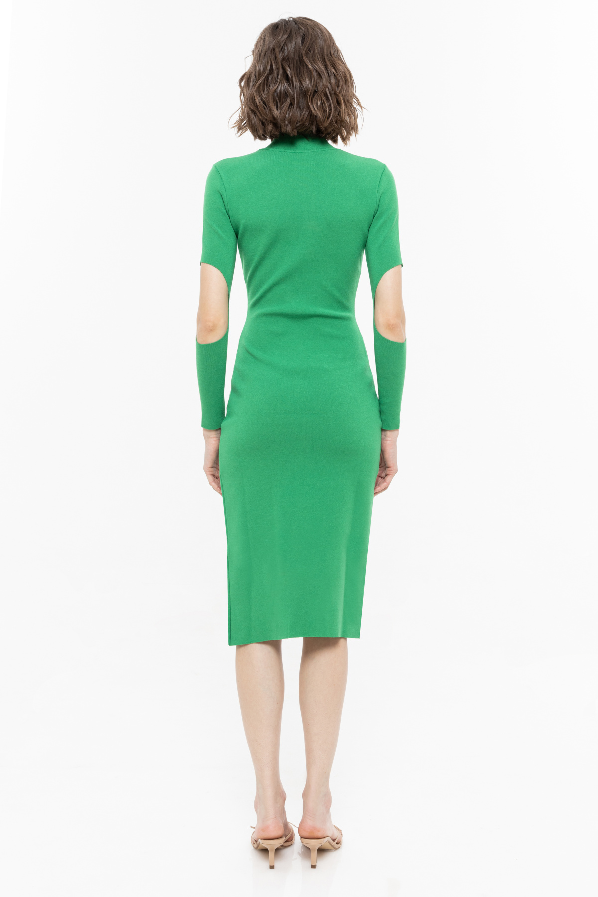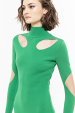 Modelul poarta masura 36, dimensiuni model: 178 cm inaltime, 82 cm bust, 59 cm talie, 89 cm sold