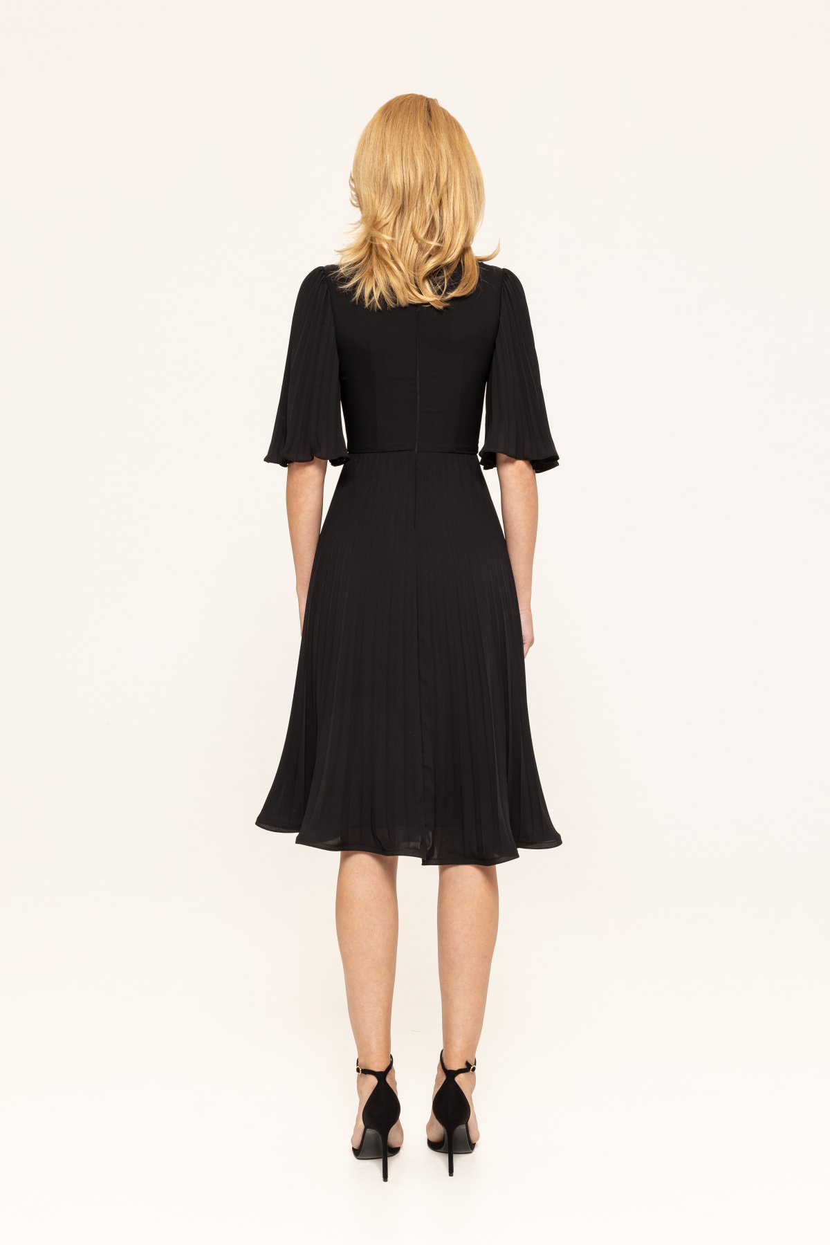 Modelul poarta masura 36, dimensiuni model: 180 cm inaltime, 89 cm bust, 60 cm talie, 89cm sold