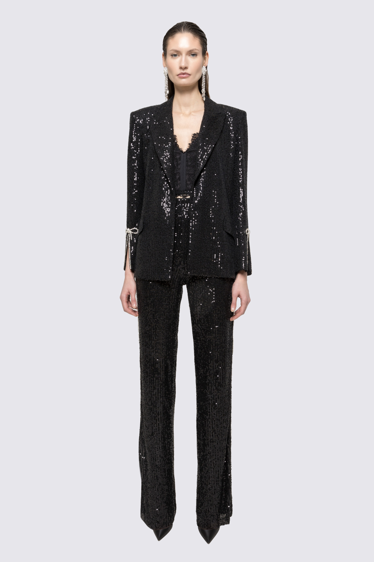 Modelul poarta masura 36, dimensiuni model: 181 cm inaltime, 82 cm bust, 61 cm talie, 90 cm sold