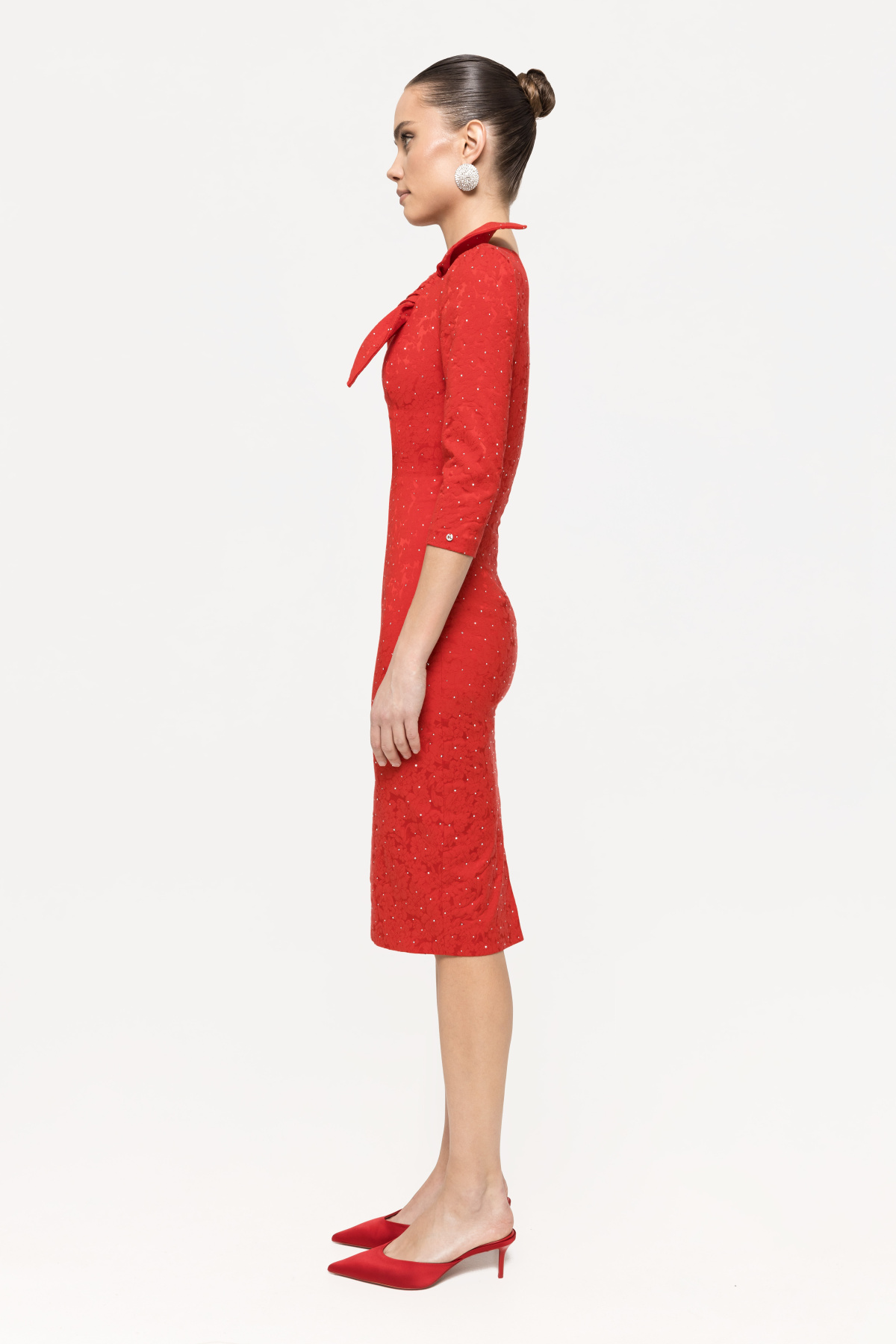 Detalii produs Rochie din brocart cu strasuri