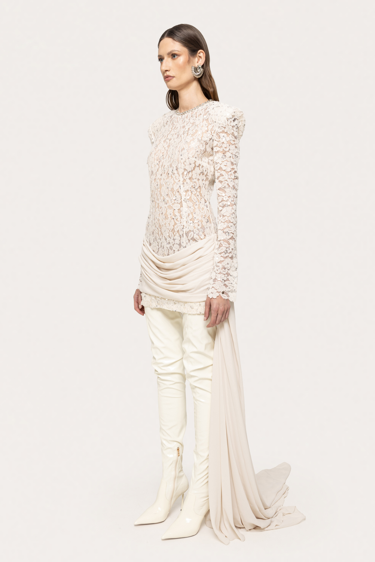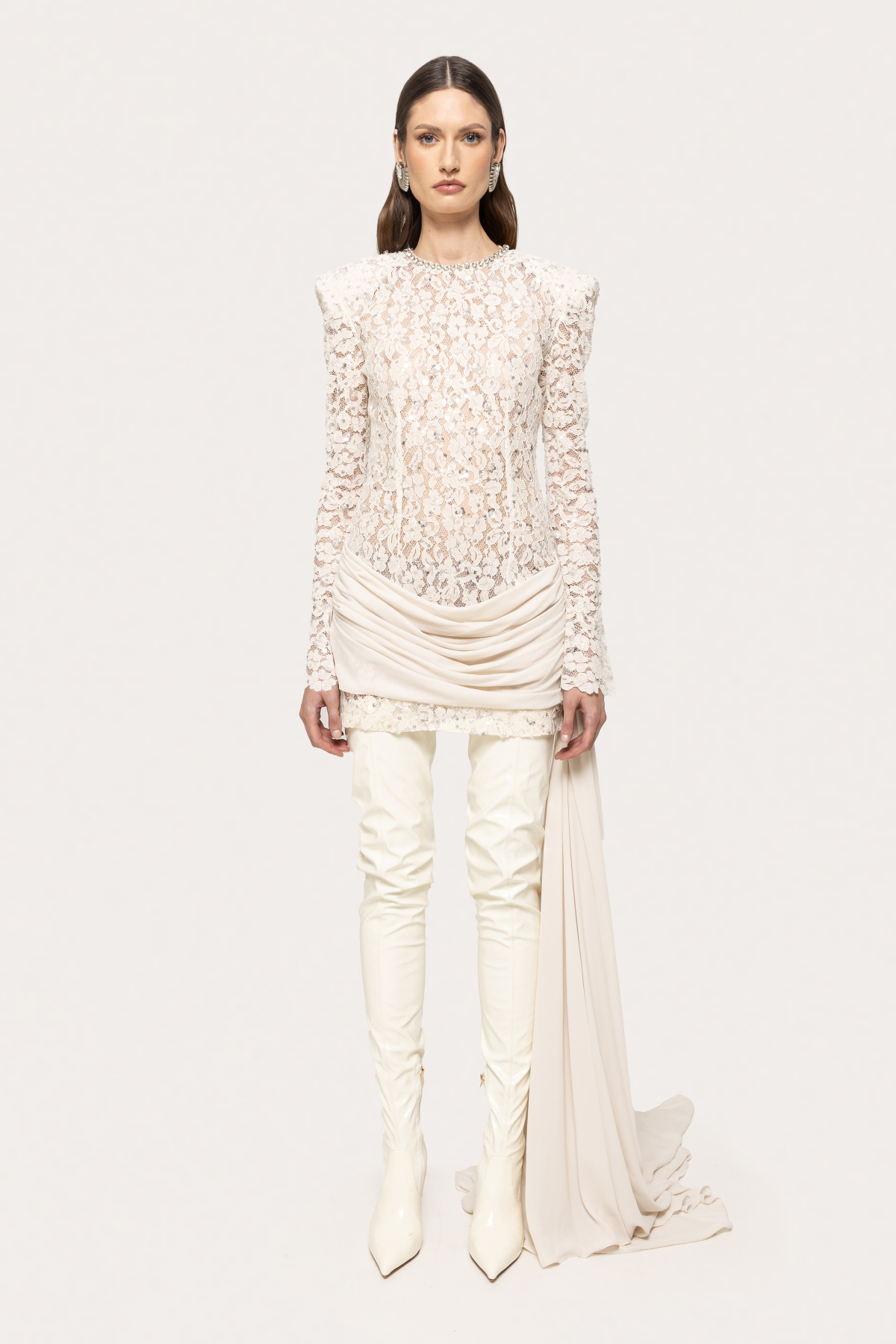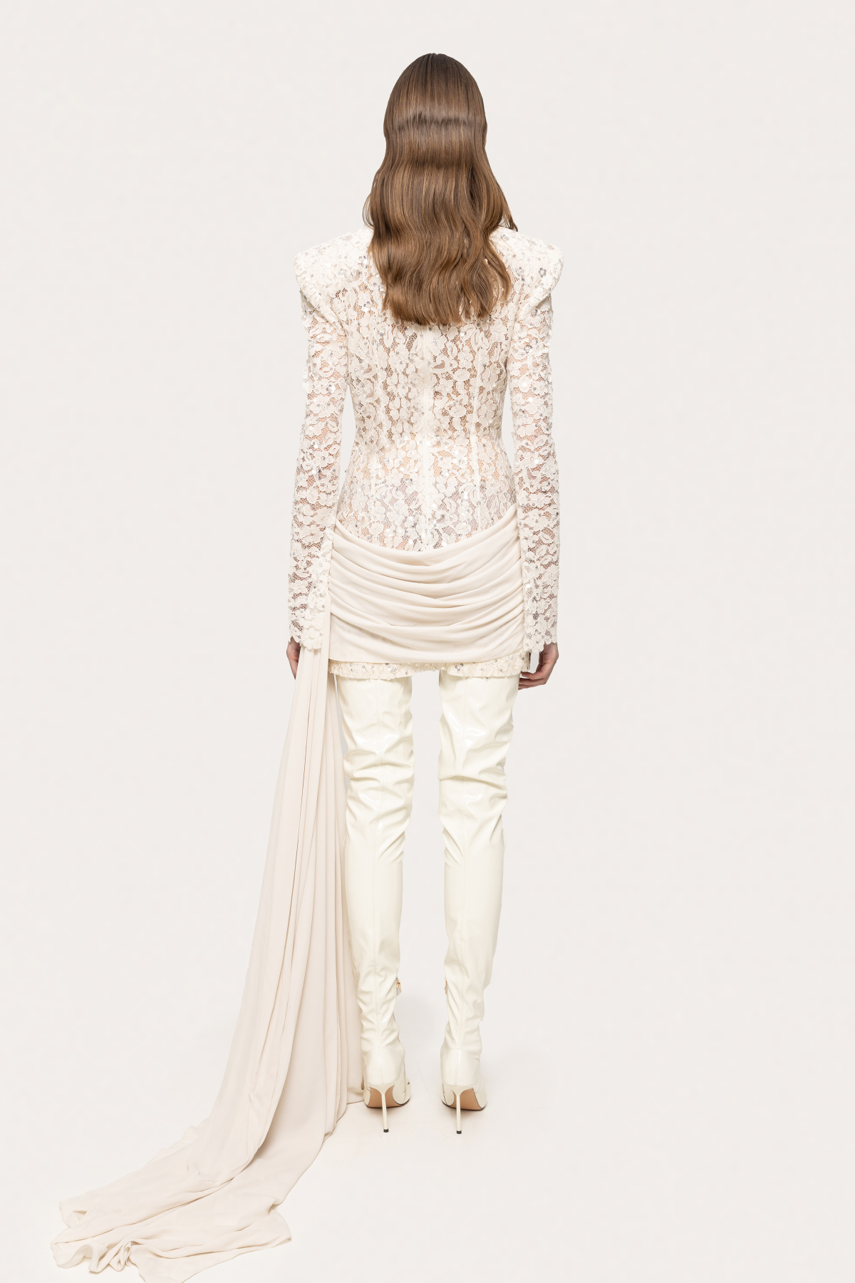 Modelul poarta masura 36, dimensiuni model: 174 cm inaltime, 86 cm bust, 60 cm talie, 88 cm sold