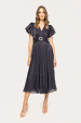 Modelul poarta masura 36, dimensiuni model: 179 cm inaltime, 83 cm bust, 61 cm talie, 90 cm sold