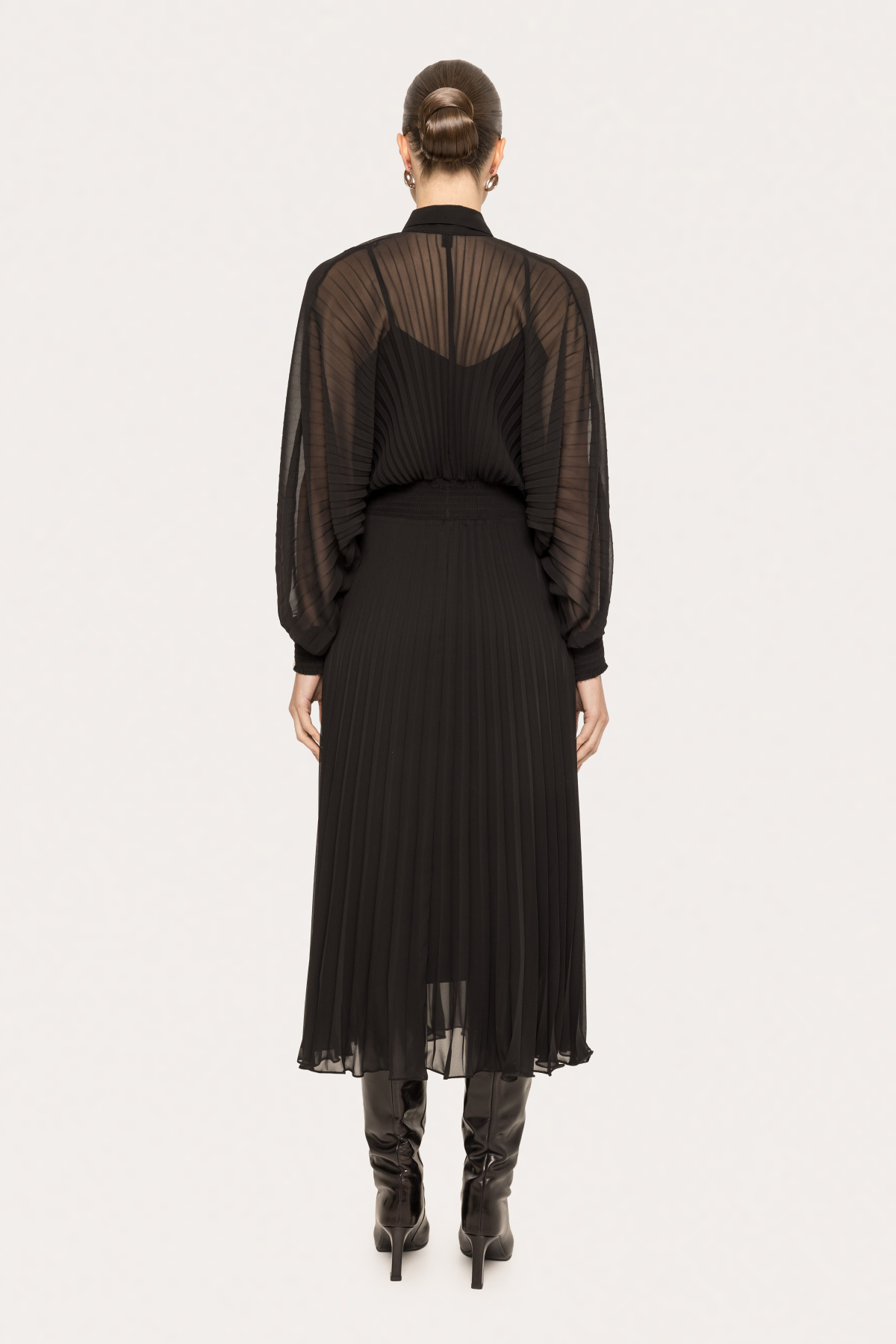Modelul poarta masura 36, dimensiuni model: 179 cm inaltime, 84 cm bust, 59 cm talie, 88 cm sold