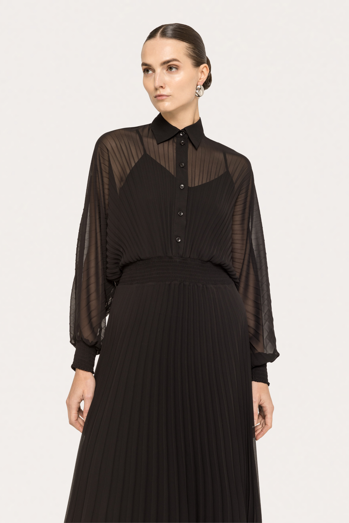 - mâneci ample, strânse la manşete